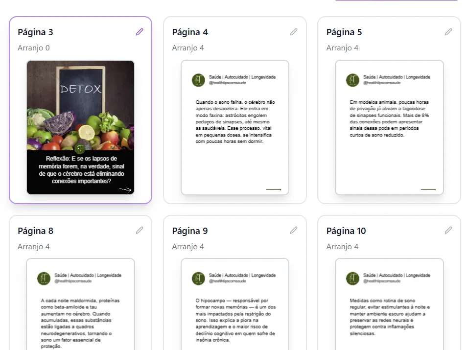 Baixe seu carrossel como imagens PNG/JPG prontas para postar.